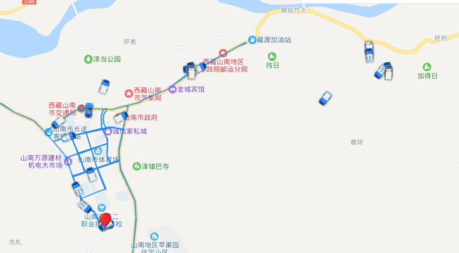 圖為山南市國策環(huán)保環(huán)保系統中車(chē)輛作業(yè)路線(xiàn)概況