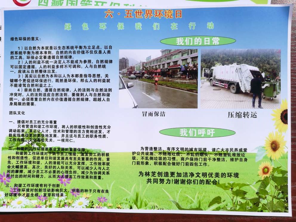 2017年6月5日,在林芝市巴宜區廈門(mén)廣場(chǎng)開(kāi)展《六五世界環(huán)境日》環(huán)保宣傳活動(dòng),——“青山綠水便是金山銀山”,呼吁廣大市民、游客等廣大群眾參與保護雪域高原最后的碧水藍天;此次活動(dòng)由林芝市環(huán)保局牽頭組織舉辦,參與活動(dòng)單位:林芝市市政管理局、西藏國策環(huán)??萍脊煞萦邢薰玖种シ止?、林芝市農牧局、林芝市國土資源局、林芝市發(fā)改委、中國華能、巴宜區環(huán)保局、林芝市商務(wù)局、林芝市科技局、林芝市林業(yè)局等單位?;顒?dòng)現場(chǎng)也聚集市民、游客等參與環(huán)保宣傳和學(xué)習環(huán)保知識。